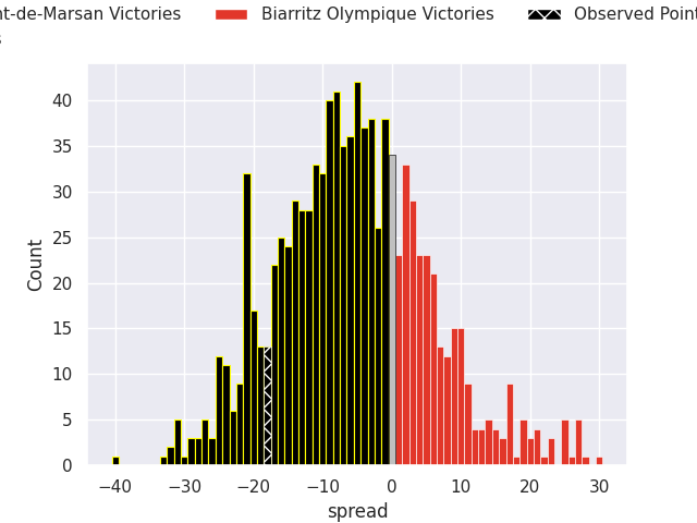 With the player model, I predicted Mont-de-Marsan to win by 5.53, and Mont-de-Marsan won by 18.0. That’s an absolute error of 12.5 for the margin of victory, while the average error as been 13.4 for the past six months. So this prediction was more accurate than 35.3% of my recent predictions.