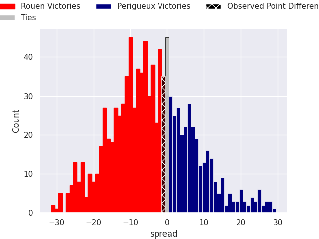 Now that the game has been played, lets see how the club predictions did. I predicted Rouen to win by 2.08, and Rouen won by 1.0. That’s an absolute error of 1.1 for the margin of victory, while my average absolute error has been 13.3 over the past six months. This prediction was more accurate than 93.7% of my recent predictions.
