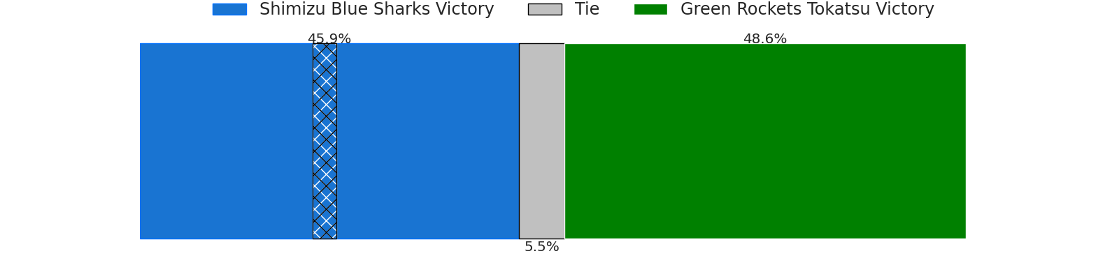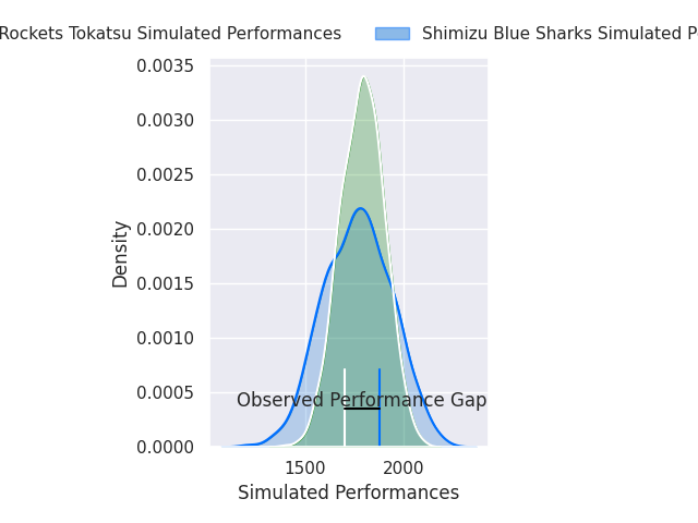 Now that the game has been played, lets see how the club predictions did. I predicted Green Rockets Tokatsu to win by 0.56, and Shimizu Blue Sharks won by 8.0. That’s an absolute error of 8.6 for the margin of victory, while my average absolute error has been 13.3 over the past six months. This prediction was more accurate than 55.2% of my recent predictions.