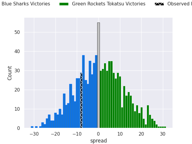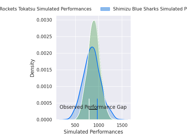 With the player model, I predicted Green Rockets Tokatsu to win by 0.72, and Shimizu Blue Sharks won by 8.0. That’s an absolute error of 8.7 for the margin of victory, while the average error as been 13.4 for the past six months. So this prediction was more accurate than 49.3% of my recent predictions.