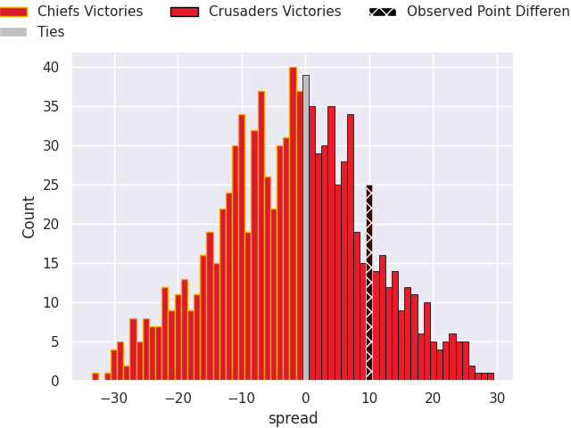 With the player model, I predicted Chiefs to win by 2.09, and Crusaders won by 10.0. That’s an absolute error of 12.1 for the margin of victory, while the average error as been 13.4 for the past six months. So this prediction was more accurate than 36.2% of my recent predictions.