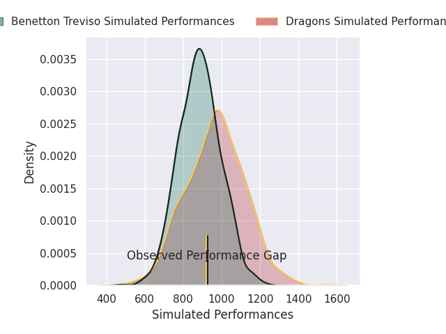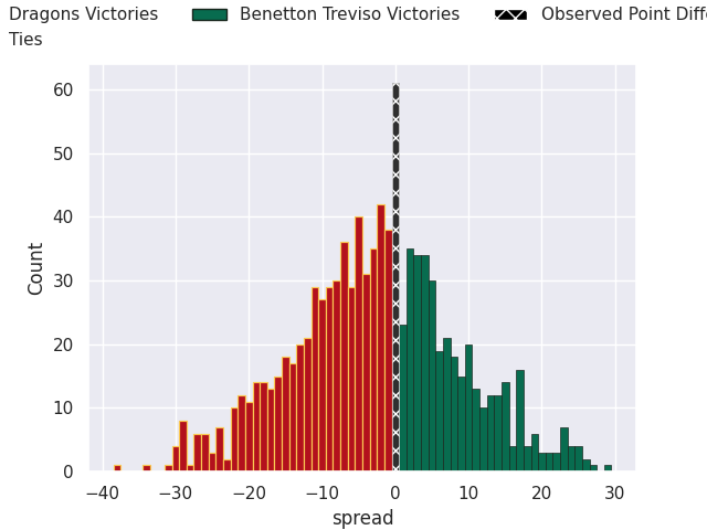 With the player model, I predicted Dragons to win by 2.65, and Benetton Treviso won by 0.0. That’s an absolute error of 2.6 for the margin of victory, while the average error as been 13.4 for the past six months. So this prediction was more accurate than 77.0% of my recent predictions.