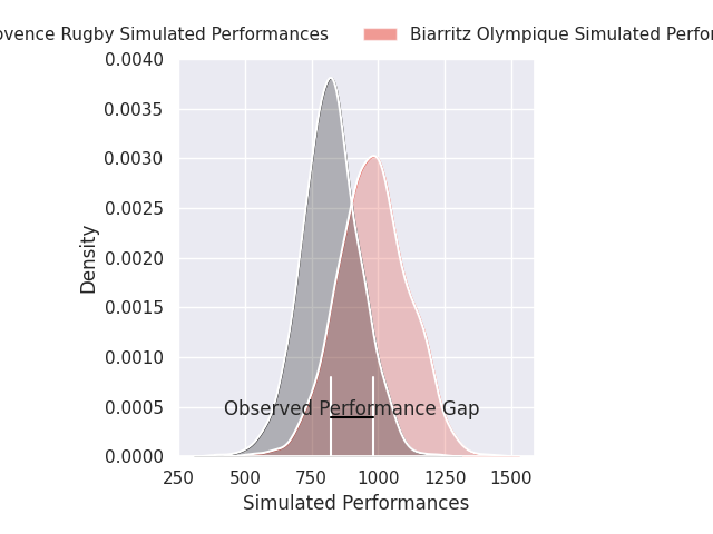 Now that the game has been played, lets see how the club predictions did. I predicted Provence Rugby to win by 0.13, and Biarritz Olympique won by 8.0. That’s an absolute error of 8.1 for the margin of victory, while my average absolute error has been 13.2 over the past six months. This prediction was more accurate than 57.2% of my recent predictions.