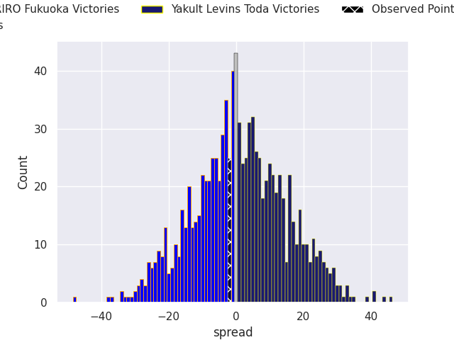 With the player model, I predicted Yakult Levins Toda to win by 2.63, and LeRIRO Fukuoka won by 2.0. That’s an absolute error of 4.6 for the margin of victory, while the average error as been 13.2 for the past six months. So this prediction was more accurate than 66.0% of my recent predictions.