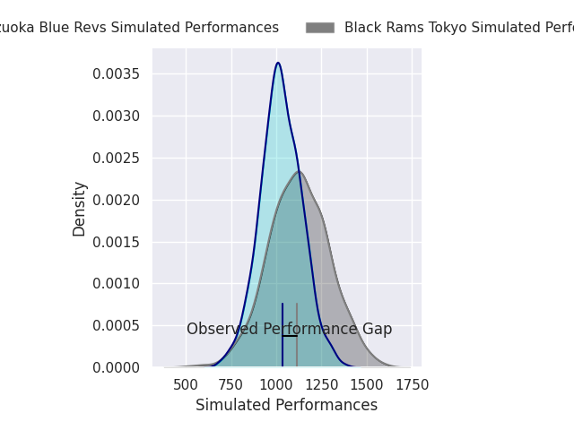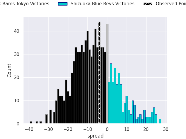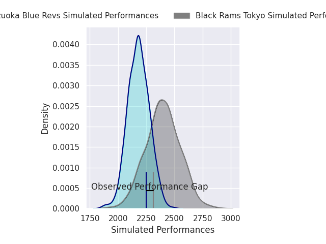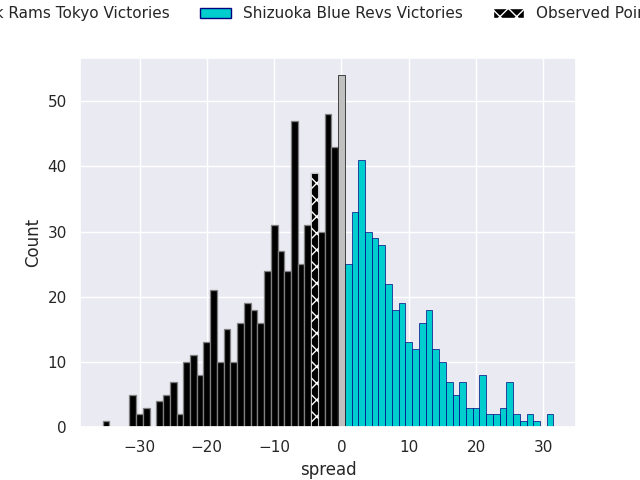 With the player model, I predicted Black Rams Tokyo to win by 2.36, and Black Rams Tokyo won by 4.0. That’s an absolute error of 1.6 for the margin of victory, while the average error as been 13.2 for the past six months. So this prediction was more accurate than 78.0% of my recent predictions.