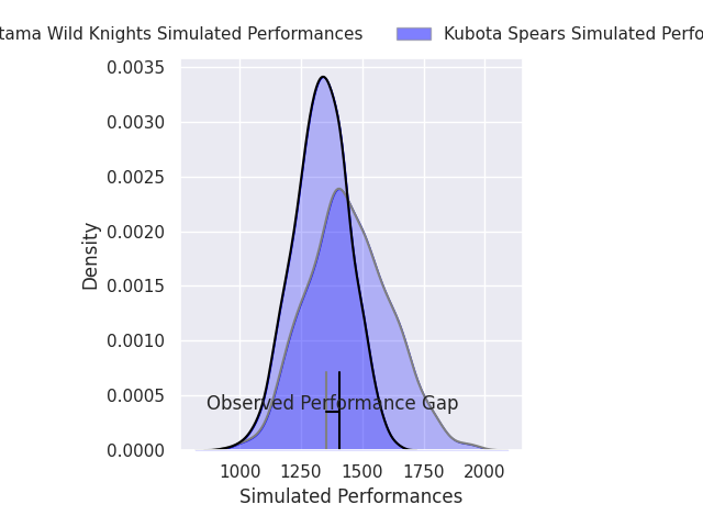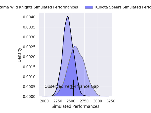 With the player model, I predicted Kubota Spears to win by 2.83, and Saitama Wild Knights won by 2.0. That’s an absolute error of 4.8 for the margin of victory, while the average error as been 13.2 for the past six months. So this prediction was more accurate than 63.2% of my recent predictions.