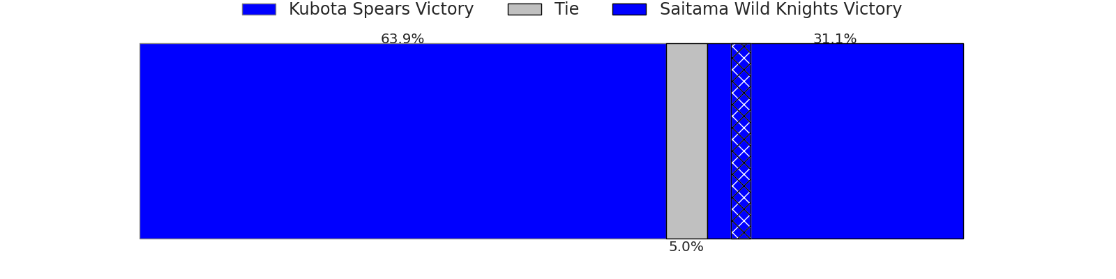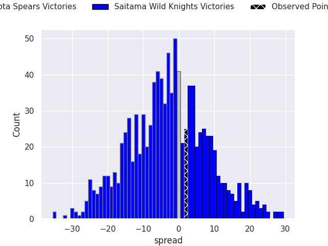 Now that the game has been played, lets see how the club predictions did. I predicted Kubota Spears to win by 4.32, and Saitama Wild Knights won by 2.0. That’s an absolute error of 6.3 for the margin of victory, while my average absolute error has been 13.3 over the past six months. This prediction was more accurate than 66.9% of my recent predictions.
