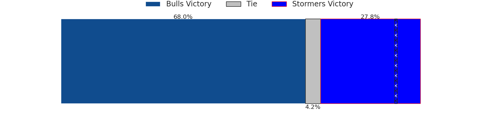 Now that the game has been played, lets see how the club predictions did. I predicted Bulls to win by 3.3, and Stormers won by 13.0. That’s an absolute error of 16.3 for the margin of victory, while my average absolute error has been 13.3 over the past six months. This prediction was more accurate than 30.2% of my recent predictions.