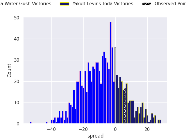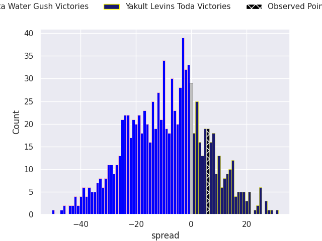 With the player model, I predicted Kurita Water Gush to win by 7.57, and Yakult Levins Toda won by 6.0. That’s an absolute error of 13.6 for the margin of victory, while the average error as been 13.2 for the past six months. So this prediction was more accurate than 30.5% of my recent predictions.