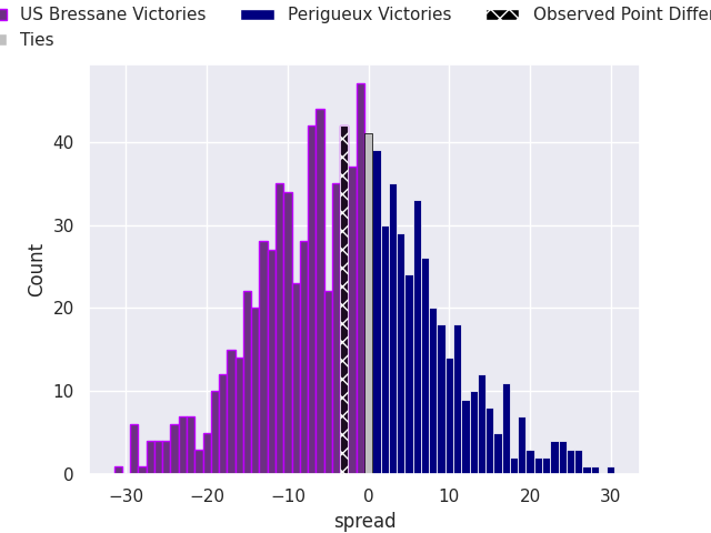 Now that the game has been played, lets see how the club predictions did. I predicted US Bressane to win by 0.57, and US Bressane won by 3.0. That’s an absolute error of 2.4 for the margin of victory, while my average absolute error has been 13.4 over the past six months. This prediction was more accurate than 86.9% of my recent predictions.
