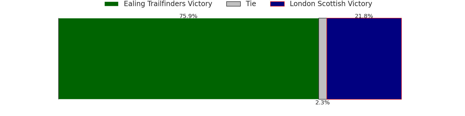Now that the game has been played, lets see how the club predictions did. I predicted Ealing Trailfinders to win by 15.42, and Ealing Trailfinders won by 53.0. That’s an absolute error of 37.6 for the margin of victory, while my average absolute error has been 13.4 over the past six months. This prediction was more accurate than 4.8% of my recent predictions.