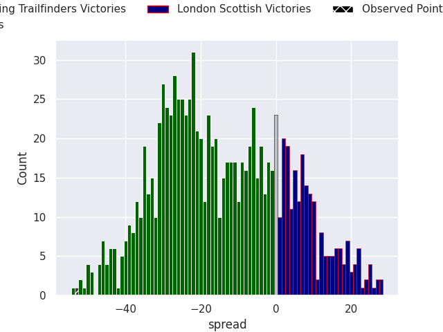 With the player model, I predicted Ealing Trailfinders to win by 14.27, and Ealing Trailfinders won by 53.0. That’s an absolute error of 38.7 for the margin of victory, while the average error as been 13.2 for the past six months. So this prediction was more accurate than 3.7% of my recent predictions.