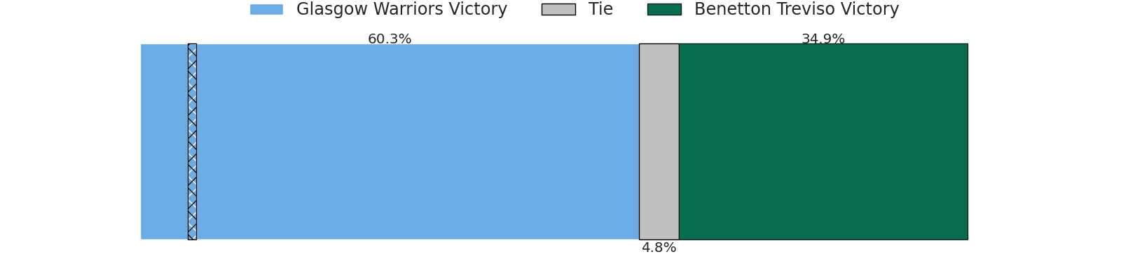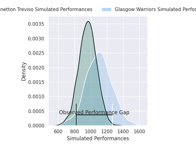Now that the game has been played, lets see how the club predictions did. I predicted Glasgow Warriors to win by 8.39, and Glasgow Warriors won by 21.0. That’s an absolute error of 12.6 for the margin of victory, while my average absolute error has been 13.5 over the past six months. This prediction was more accurate than 41.5% of my recent predictions.