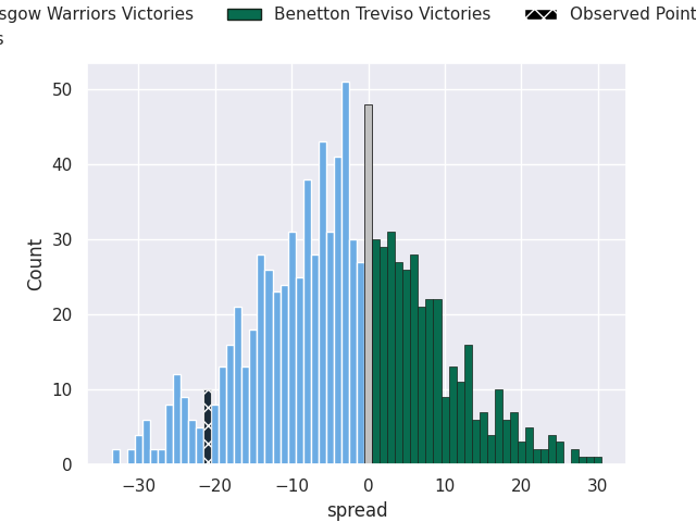 With the player model, I predicted Glasgow Warriors to win by 3.45, and Glasgow Warriors won by 21.0. That’s an absolute error of 17.6 for the margin of victory, while the average error as been 13.2 for the past six months. So this prediction was more accurate than 22.2% of my recent predictions.