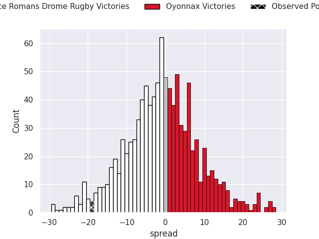 With the player model, I predicted Valence Romans Drome Rugby to win by 0.94, and Valence Romans Drome Rugby won by 19.0. That’s an absolute error of 18.1 for the margin of victory, while the average error as been 13.2 for the past six months. So this prediction was more accurate than 21.5% of my recent predictions.