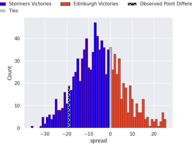 Now that the game has been played, lets see how the club predictions did. I predicted Stormers to win by 5.94, and Stormers won by 19.0. That’s an absolute error of 13.1 for the margin of victory, while my average absolute error has been 13.5 over the past six months. This prediction was more accurate than 40.1% of my recent predictions.