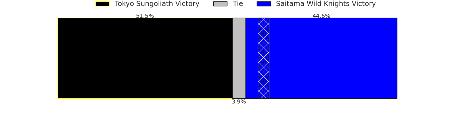 Now that the game has been played, lets see how the club predictions did. I predicted Tokyo Sungoliath to win by 0.63, and Saitama Wild Knights won by 2.0. That’s an absolute error of 2.6 for the margin of victory, while my average absolute error has been 13.5 over the past six months. This prediction was more accurate than 86.1% of my recent predictions.