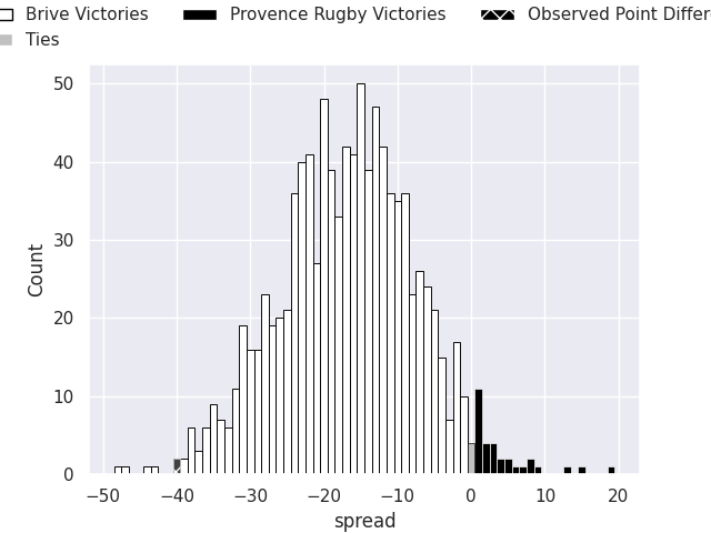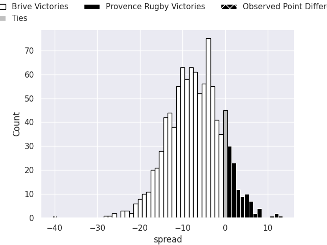 With the player model, I predicted Brive to win by 16.74, and Brive won by 40.0. That’s an absolute error of 23.3 for the margin of victory, while the average error as been 13.3 for the past six months. So this prediction was more accurate than 14.3% of my recent predictions.