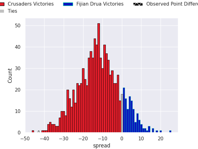 With the player model, I predicted Crusaders to win by 12.08, and Crusaders won by 43.0. That’s an absolute error of 30.9 for the margin of victory, while the average error as been 13.3 for the past six months. So this prediction was more accurate than 7.8% of my recent predictions.