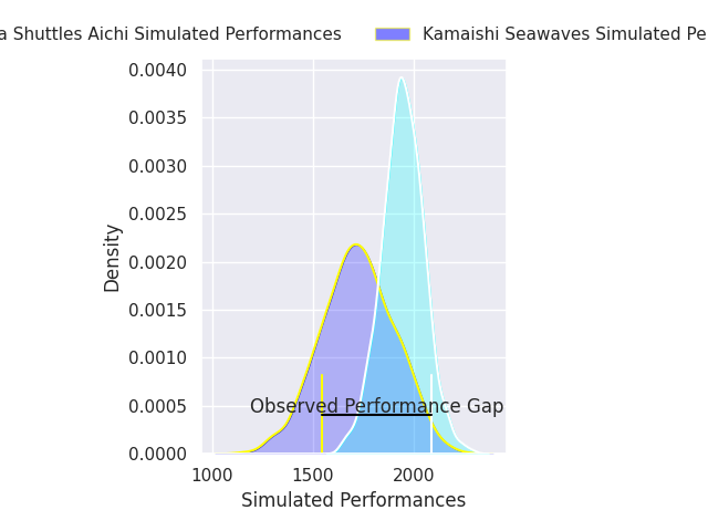 Now that the game has been played, lets see how the club predictions did. I predicted Toyota Shuttles Aichi to win by 11.09, and Toyota Shuttles Aichi won by 25.0. That’s an absolute error of 13.9 for the margin of victory, while my average absolute error has been 13.5 over the past six months. This prediction was more accurate than 37.6% of my recent predictions.