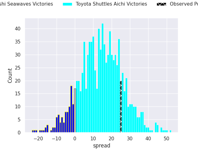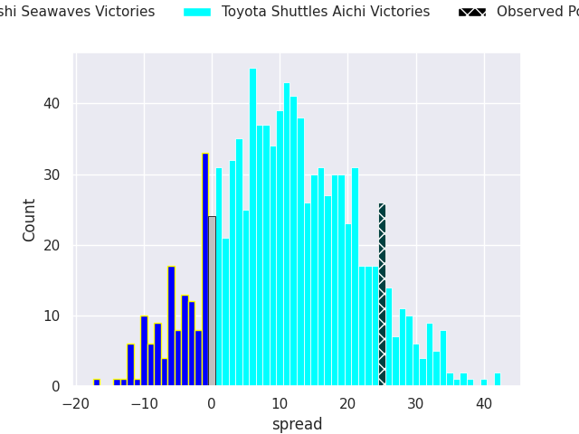 With the player model, I predicted Toyota Shuttles Aichi to win by 14.37, and Toyota Shuttles Aichi won by 25.0. That’s an absolute error of 10.6 for the margin of victory, while the average error as been 13.3 for the past six months. So this prediction was more accurate than 39.7% of my recent predictions.