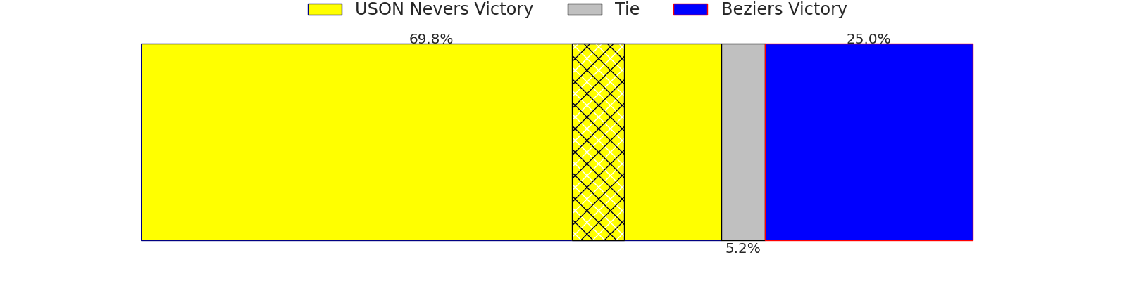 Now that the game has been played, lets see how the club predictions did. I predicted USON Nevers to win by 3.75, and USON Nevers won by 3.0. That’s an absolute error of 0.8 for the margin of victory, while my average absolute error has been 13.5 over the past six months. This prediction was more accurate than 95.5% of my recent predictions.