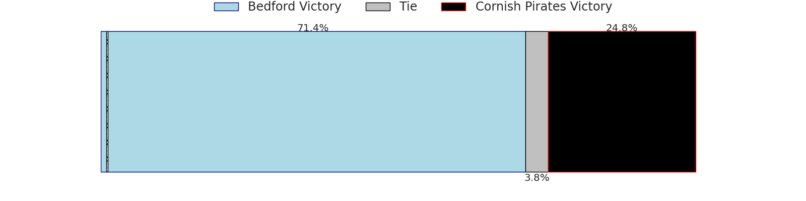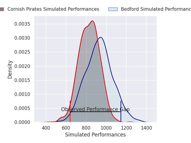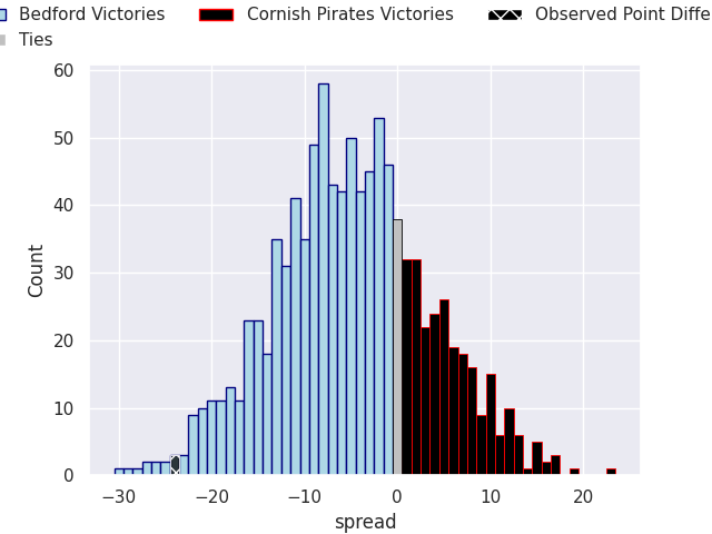 Now that the game has been played, lets see how the club predictions did. I predicted Bedford to win by 5.62, and Bedford won by 24.0. That’s an absolute error of 18.4 for the margin of victory, while my average absolute error has been 13.5 over the past six months. This prediction was more accurate than 26.0% of my recent predictions.