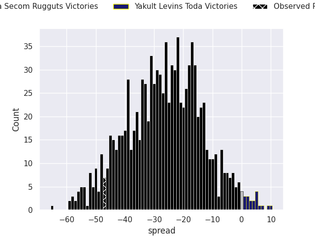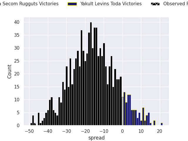 With the player model, I predicted Sayama Secom Rugguts to win by 15.96, and Sayama Secom Rugguts won by 47.0. That’s an absolute error of 31.0 for the margin of victory, while the average error as been 13.3 for the past six months. So this prediction was more accurate than 7.6% of my recent predictions.
