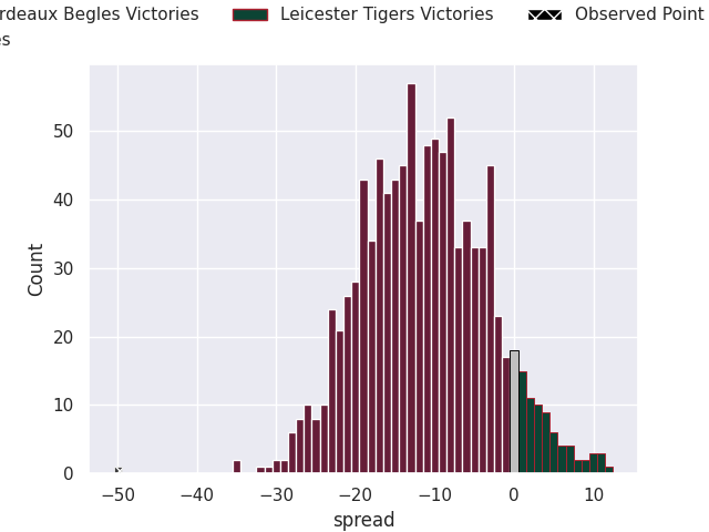 With the player model, I predicted Bordeaux Begles to win by 11.29, and Bordeaux Begles won by 50.0. That’s an absolute error of 38.7 for the margin of victory, while the average error as been 13.3 for the past six months. So this prediction was more accurate than 3.9% of my recent predictions.