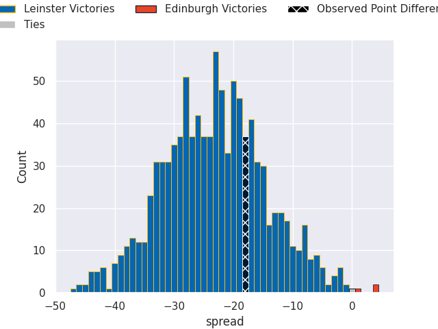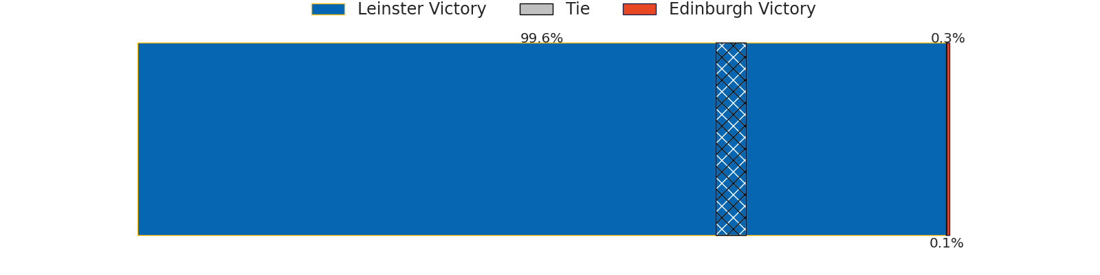 With the player model, I predicted Leinster to win by 23.17, and Leinster won by 18.0. That’s an absolute error of 5.2 for the margin of victory, while the average error as been 13.3 for the past six months. So this prediction was more accurate than 61.0% of my recent predictions.