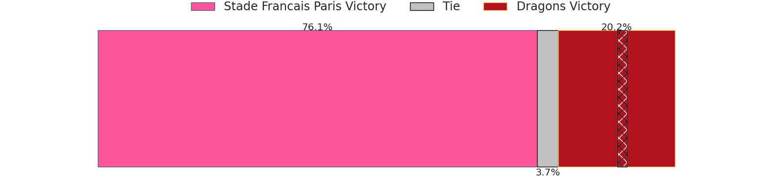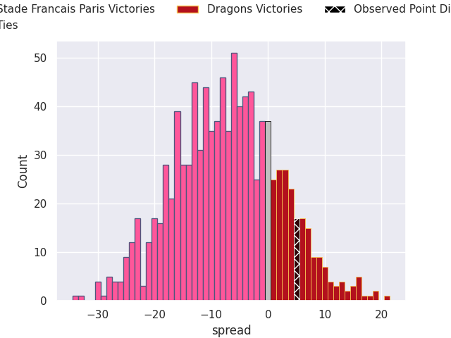 With the player model, I predicted Stade Francais Paris to win by 7.21, and Dragons won by 5.0. That’s an absolute error of 12.2 for the margin of victory, while the average error as been 13.3 for the past six months. So this prediction was more accurate than 34.3% of my recent predictions.