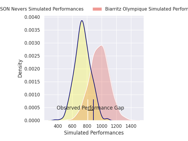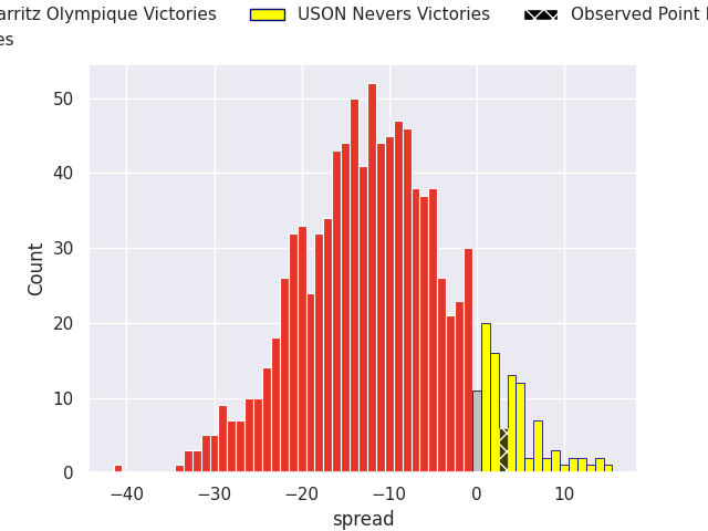 Now that the game has been played, lets see how the club predictions did. I predicted Biarritz Olympique to win by 10.53, and USON Nevers won by 3.0. That’s an absolute error of 13.5 for the margin of victory, while my average absolute error has been 13.7 over the past six months. This prediction was more accurate than 39.9% of my recent predictions.