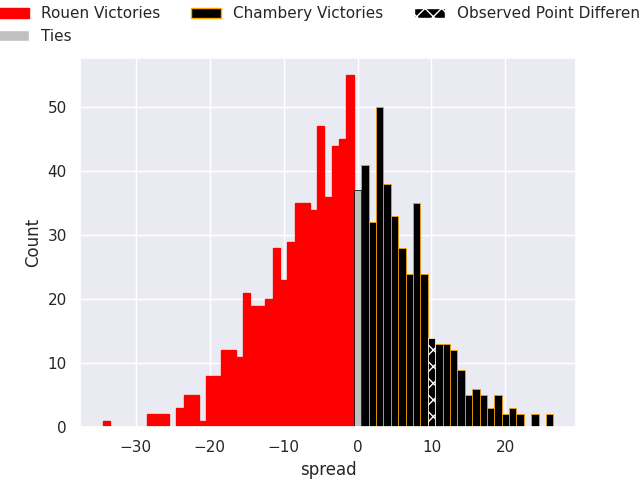 Now that the game has been played, lets see how the club predictions did. I predicted Rouen to win by 0.5, and Chambery won by 10.0. That’s an absolute error of 10.5 for the margin of victory, while my average absolute error has been 13.7 over the past six months. This prediction was more accurate than 50.0% of my recent predictions.