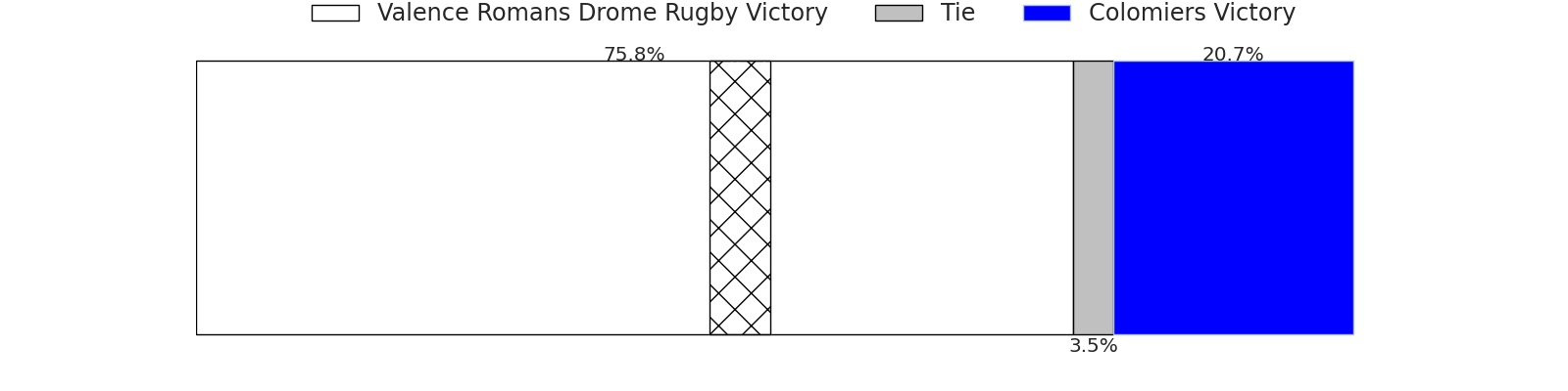 Now that the game has been played, lets see how the club predictions did. I predicted Valence Romans Drome Rugby to win by 2.34, and Valence Romans Drome Rugby won by 7.0. That’s an absolute error of 4.7 for the margin of victory, while my average absolute error has been 13.7 over the past six months. This prediction was more accurate than 76.5% of my recent predictions.