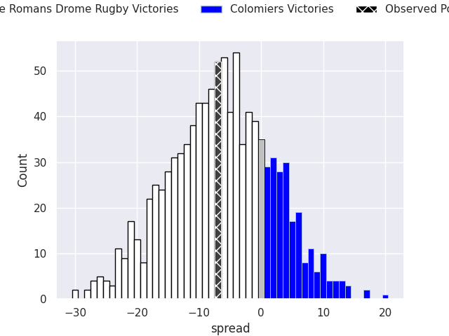 With the player model, I predicted Valence Romans Drome Rugby to win by 6.53, and Valence Romans Drome Rugby won by 7.0. That’s an absolute error of 0.5 for the margin of victory, while the average error as been 13.9 for the past six months. So this prediction was more accurate than 89.2% of my recent predictions.