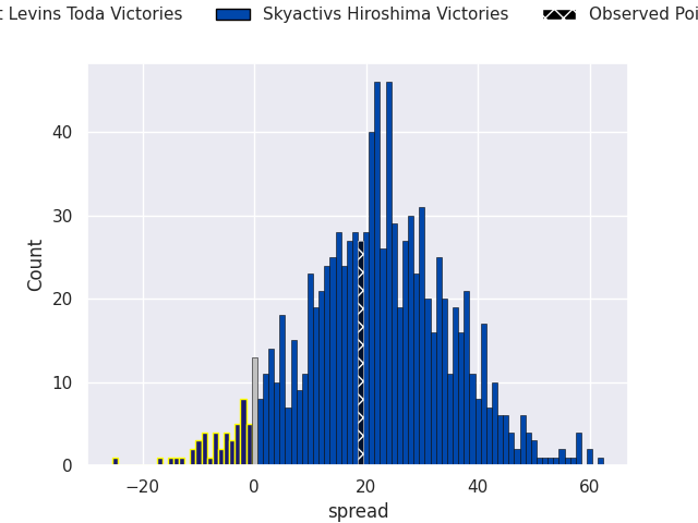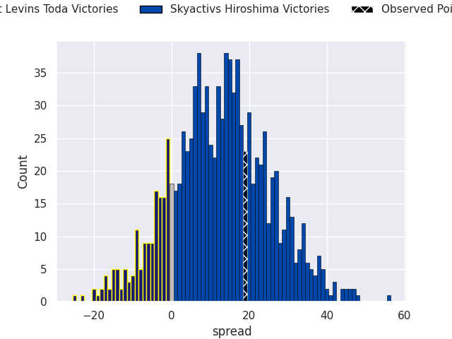 With the player model, I predicted Skyactivs Hiroshima to win by 12.63, and Skyactivs Hiroshima won by 19.0. That’s an absolute error of 6.4 for the margin of victory, while the average error as been 13.9 for the past six months. So this prediction was more accurate than 61.8% of my recent predictions.