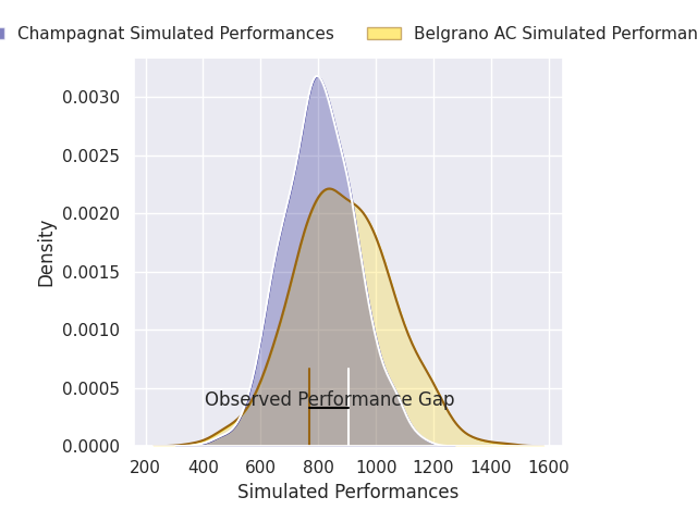 With the player model, I predicted Belgrano AC to win by 4.03, and Champagnat won by 6.0. That’s an absolute error of 10.0 for the margin of victory, while the average error as been 13.9 for the past six months. So this prediction was more accurate than 46.9% of my recent predictions.