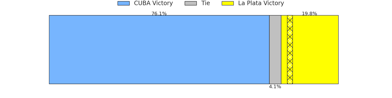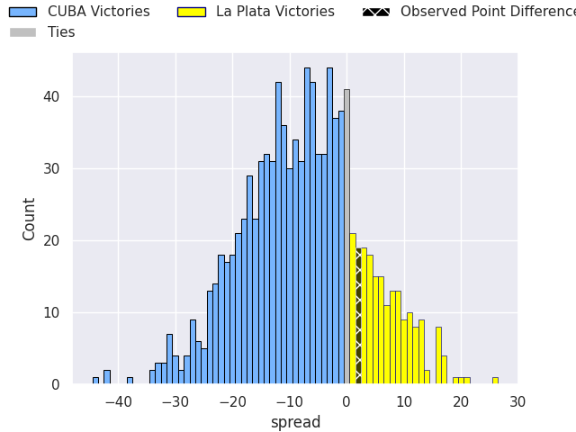 Now that the game has been played, lets see how the club predictions did. I predicted CUBA to win by 11.34, and La Plata won by 2.0. That’s an absolute error of 13.3 for the margin of victory, while my average absolute error has been 13.7 over the past six months. This prediction was more accurate than 40.5% of my recent predictions.