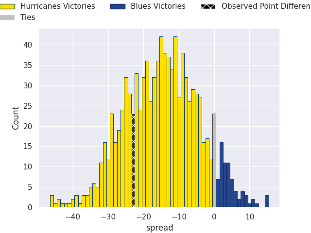 Now that the game has been played, lets see how the club predictions did. I predicted Hurricanes to win by 5.18, and Hurricanes won by 23.0. That’s an absolute error of 17.8 for the margin of victory, while my average absolute error has been 13.7 over the past six months. This prediction was more accurate than 27.8% of my recent predictions.
