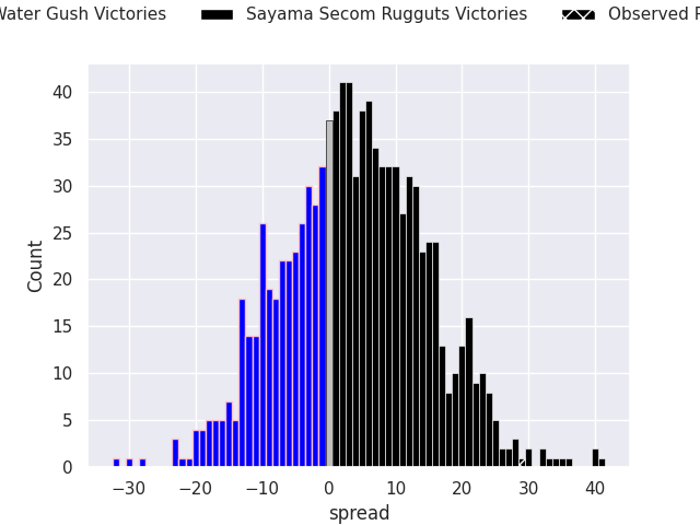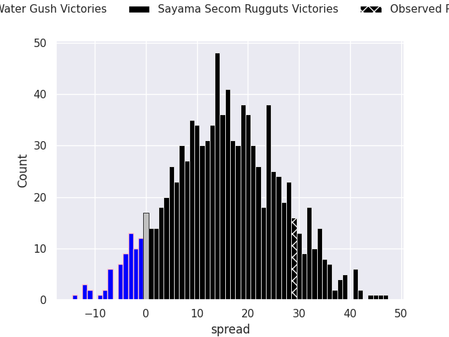 With the player model, I predicted Sayama Secom Rugguts to win by 3.91, and Sayama Secom Rugguts won by 29.0. That’s an absolute error of 25.1 for the margin of victory, while the average error as been 13.9 for the past six months. So this prediction was more accurate than 14.0% of my recent predictions.