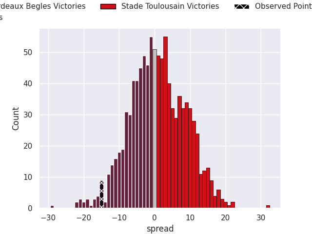 With the player model, I predicted Stade Toulousain to win by 0.8, and Bordeaux Begles won by 15.0. That’s an absolute error of 15.8 for the margin of victory, while the average error as been 13.9 for the past six months. So this prediction was more accurate than 29.7% of my recent predictions.