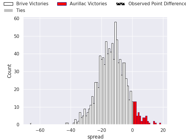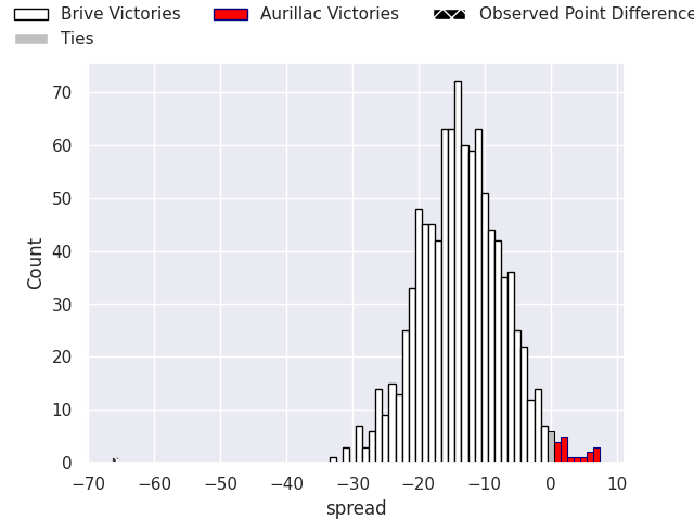 With the player model, I predicted Brive to win by 13.16, and Brive won by 66.0. That’s an absolute error of 52.8 for the margin of victory, while the average error as been 13.9 for the past six months. So this prediction was more accurate than 0.9% of my recent predictions.