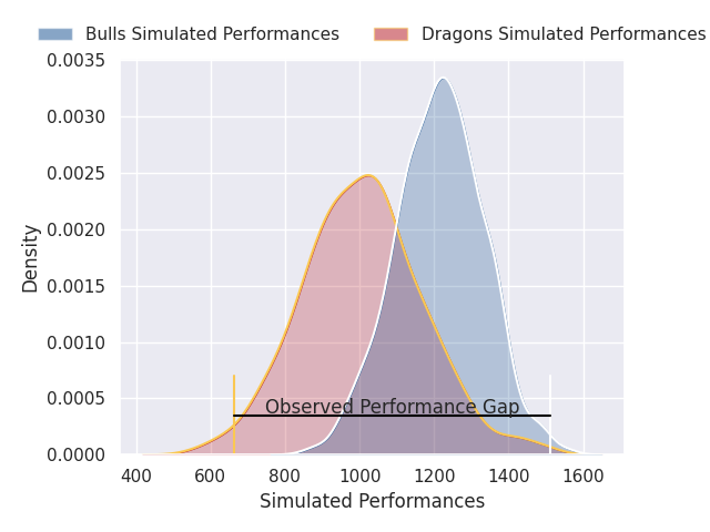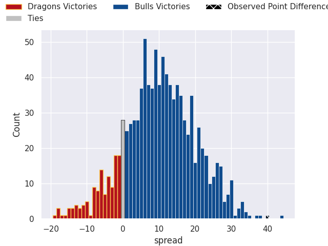 Now that the game has been played, lets see how the club predictions did. I predicted Bulls to win by 2.01, and Bulls won by 40.0. That’s an absolute error of 38.0 for the margin of victory, while my average absolute error has been 13.8 over the past six months. This prediction was more accurate than 5.4% of my recent predictions.