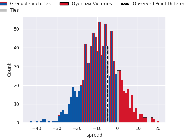 With the player model, I predicted Grenoble to win by 8.46, and Grenoble won by 5.0. That’s an absolute error of 3.5 for the margin of victory, while the average error as been 13.9 for the past six months. So this prediction was more accurate than 73.5% of my recent predictions.