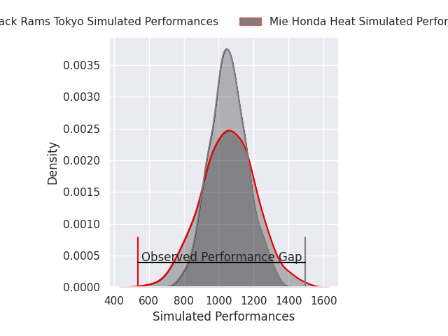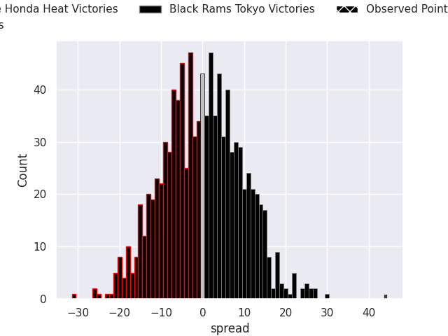 With the player model, I predicted Mie Honda Heat to win by 0.05, and Black Rams Tokyo won by 44.0. That’s an absolute error of 44.0 for the margin of victory, while the average error as been 13.9 for the past six months. So this prediction was more accurate than 2.8% of my recent predictions.