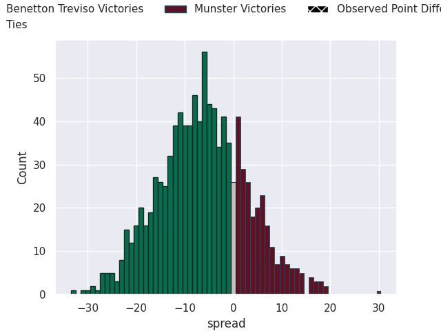 With the player model, I predicted Benetton Treviso to win by 6.23, and Munster won by 30.0. That’s an absolute error of 36.2 for the margin of victory, while the average error as been 13.9 for the past six months. So this prediction was more accurate than 5.9% of my recent predictions.