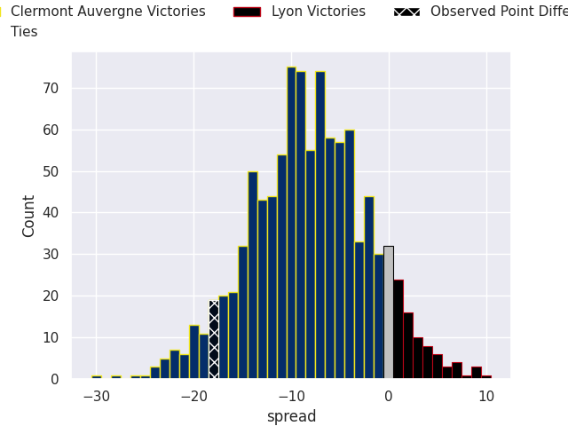 With the player model, I predicted Clermont Auvergne to win by 9.09, and Clermont Auvergne won by 18.0. That’s an absolute error of 8.9 for the margin of victory, while the average error as been 13.9 for the past six months. So this prediction was more accurate than 50.6% of my recent predictions.