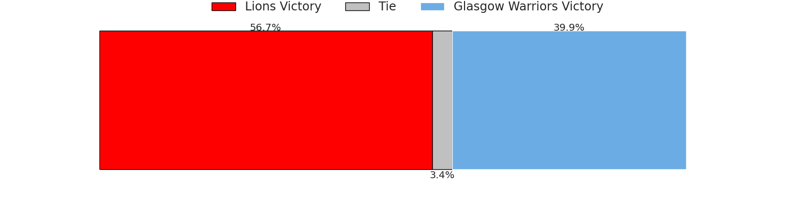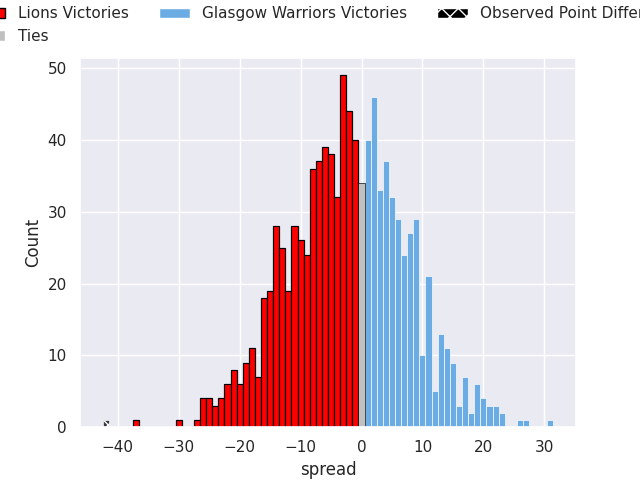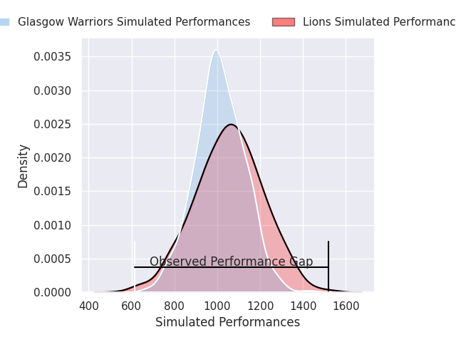 Now that the game has been played, lets see how the club predictions did. I predicted Glasgow Warriors to win by 3.4, and Lions won by 42.0. That’s an absolute error of 45.4 for the margin of victory, while my average absolute error has been 13.8 over the past six months. This prediction was more accurate than 2.6% of my recent predictions.