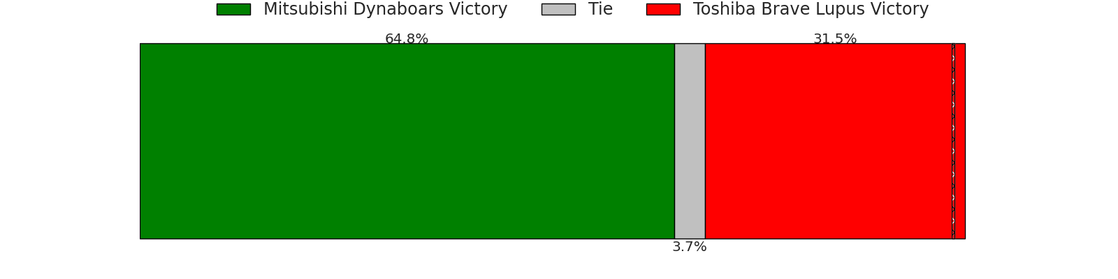 Now that the game has been played, lets see how the club predictions did. I predicted Toshiba Brave Lupus to win by 0.44, and Toshiba Brave Lupus won by 19.0. That’s an absolute error of 18.6 for the margin of victory, while my average absolute error has been 13.8 over the past six months. This prediction was more accurate than 26.3% of my recent predictions.