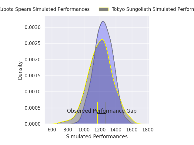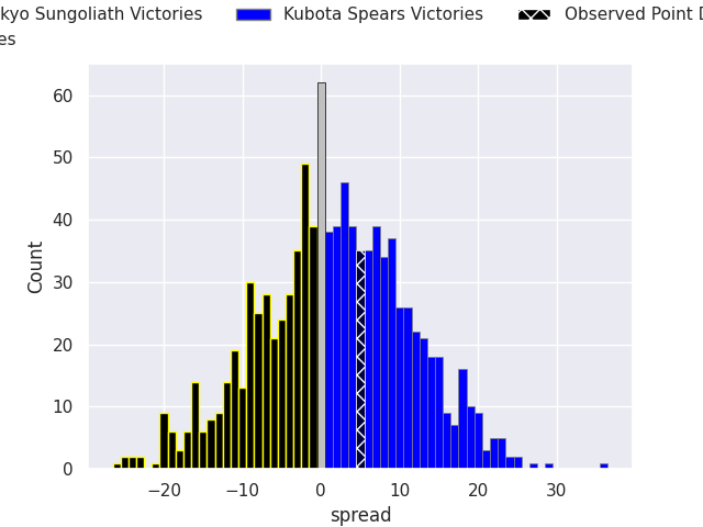 With the player model, I predicted Kubota Spears to win by 1.72, and Kubota Spears won by 5.0. That’s an absolute error of 3.3 for the margin of victory, while the average error as been 13.9 for the past six months. So this prediction was more accurate than 74.4% of my recent predictions.